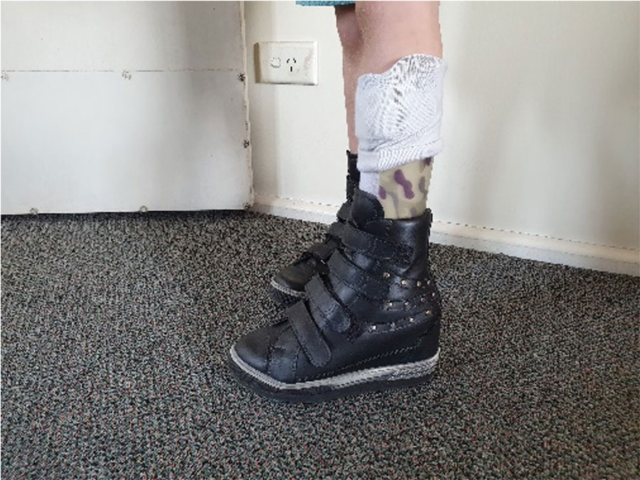 Custom made paediatric boots to accommodate the custom made AFO.